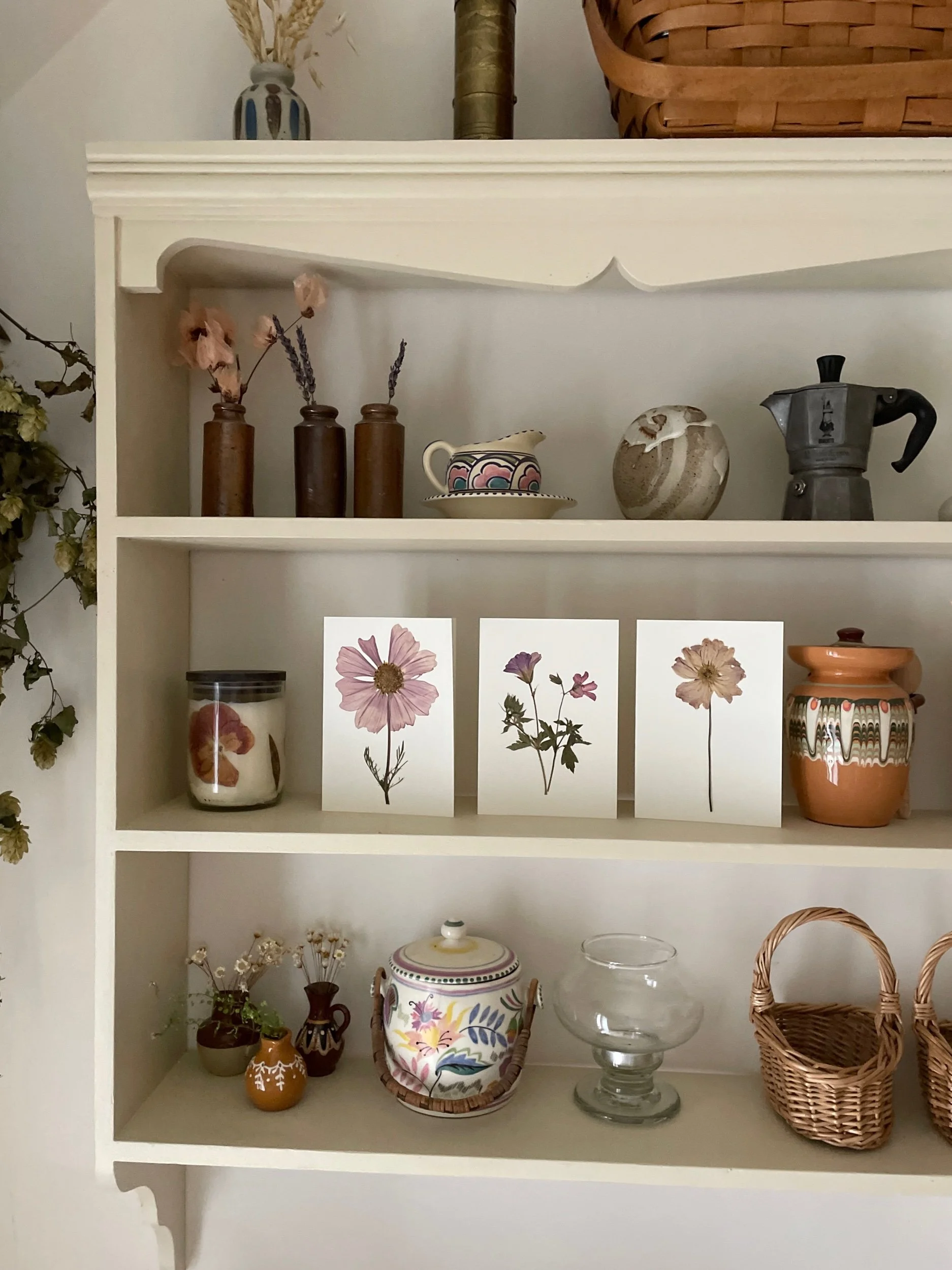Handmade greetings card, featuring pressed wild and cottage garden flowers set onto luxurious, Italian card. Each card is blank inside and comes with a Kraft envelope.